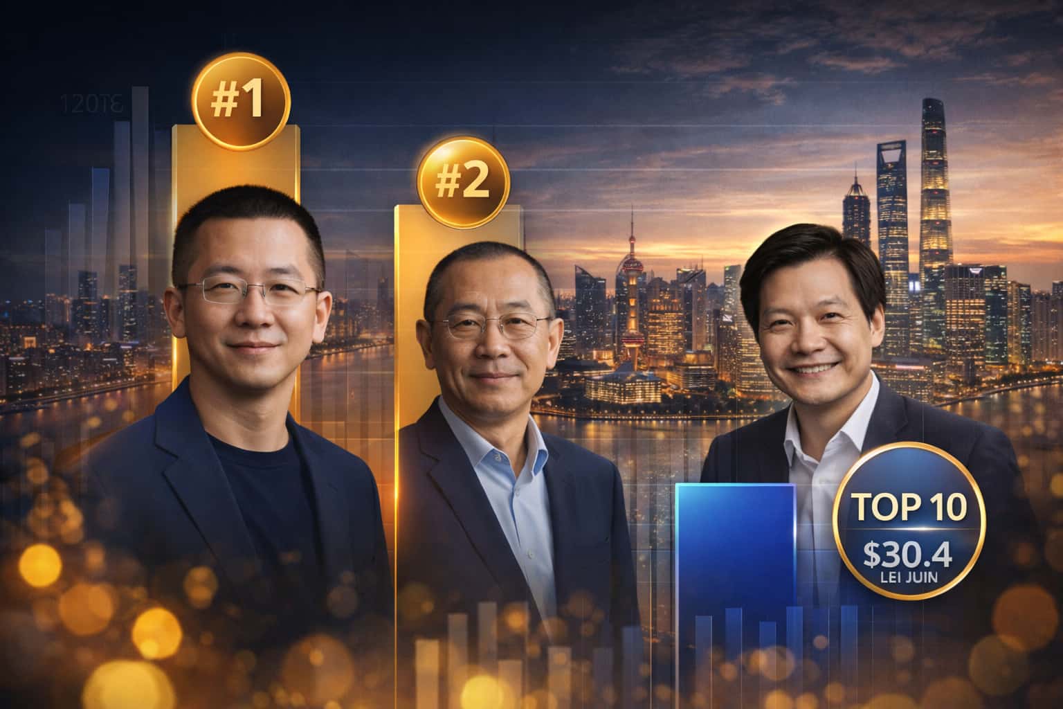 Uno de los movimientos más comentados es la entrada de Lei Jun, fundador de Xiaomi, al top 10 del ranking. El material señala que su patrimonio alcanza los 30.400 millones de dólares, lo que le permite ubicarse por delante de Jack Ma, fundador de Alibaba.